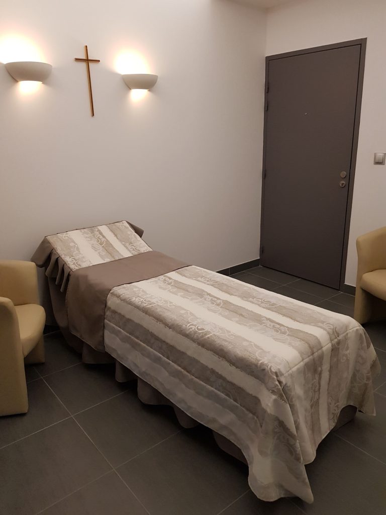 Notre salon funéraire permet aux proches du défunt de se recueillir en toute intimité dans un cadre chaleureux et moderne. Nous mettons également à votre disposition un espace de convivialité équipé d’une machine à boissons chaudes et froides.